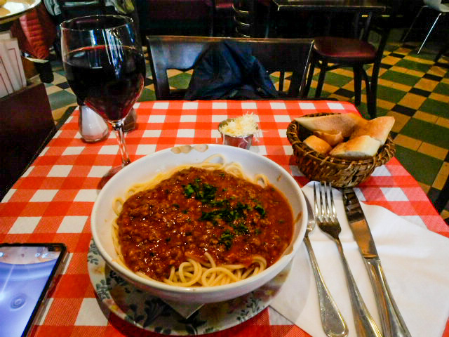 うーん、満足。だけど、高い、高すぎる。パスタとワイン2杯でおよそ6,000円だ。